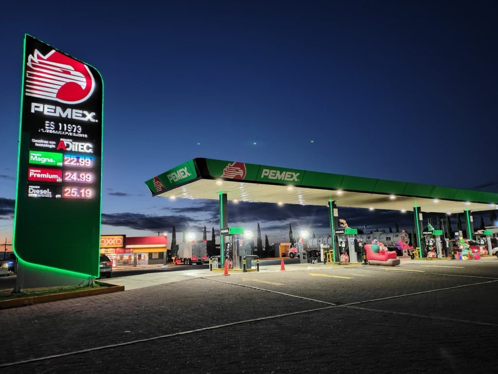 Colocación de anuncio distintivo PEMEX, así como tabletas de producto e informativas elaboradas en lona y vinil traslúcido, montadas sobre bastidores abatibles por ambos lados, lo que facilita las labores de mantenimiento futuro.